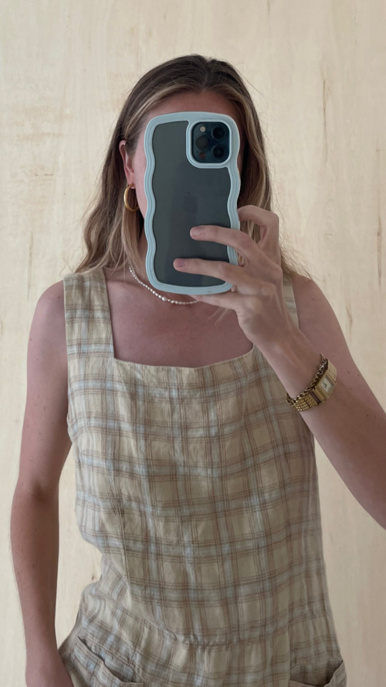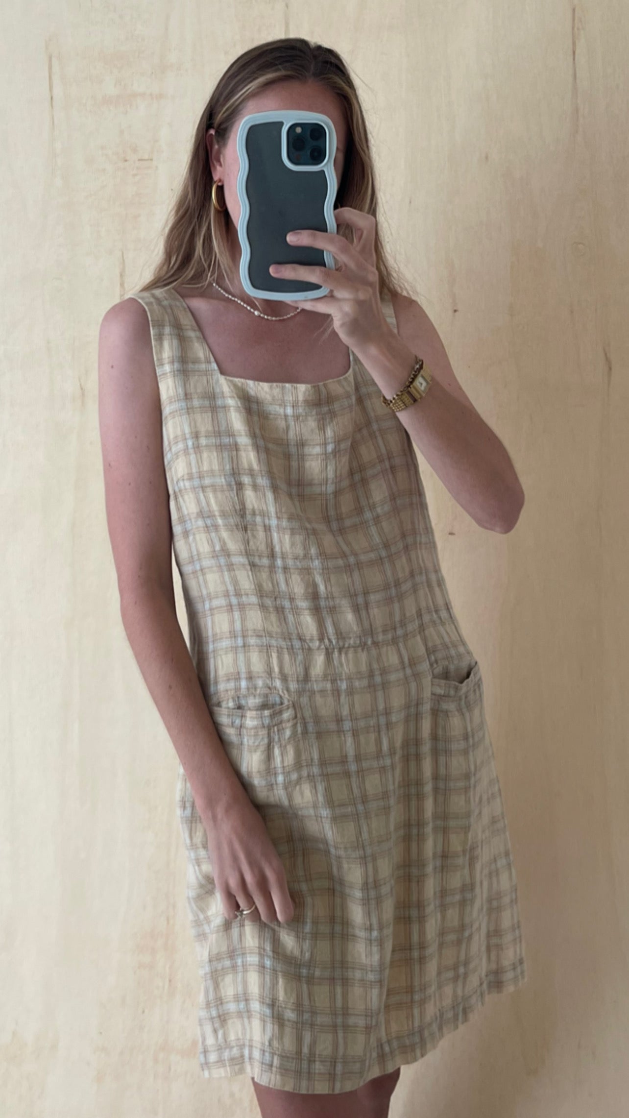 This vintage banana republic dress is made from 100% linen and is so soft with such a beautiful toned plaid print. Would be so cute with a turtleneck under it for fall or with a sweater over it. A great multi-seasonal piece!