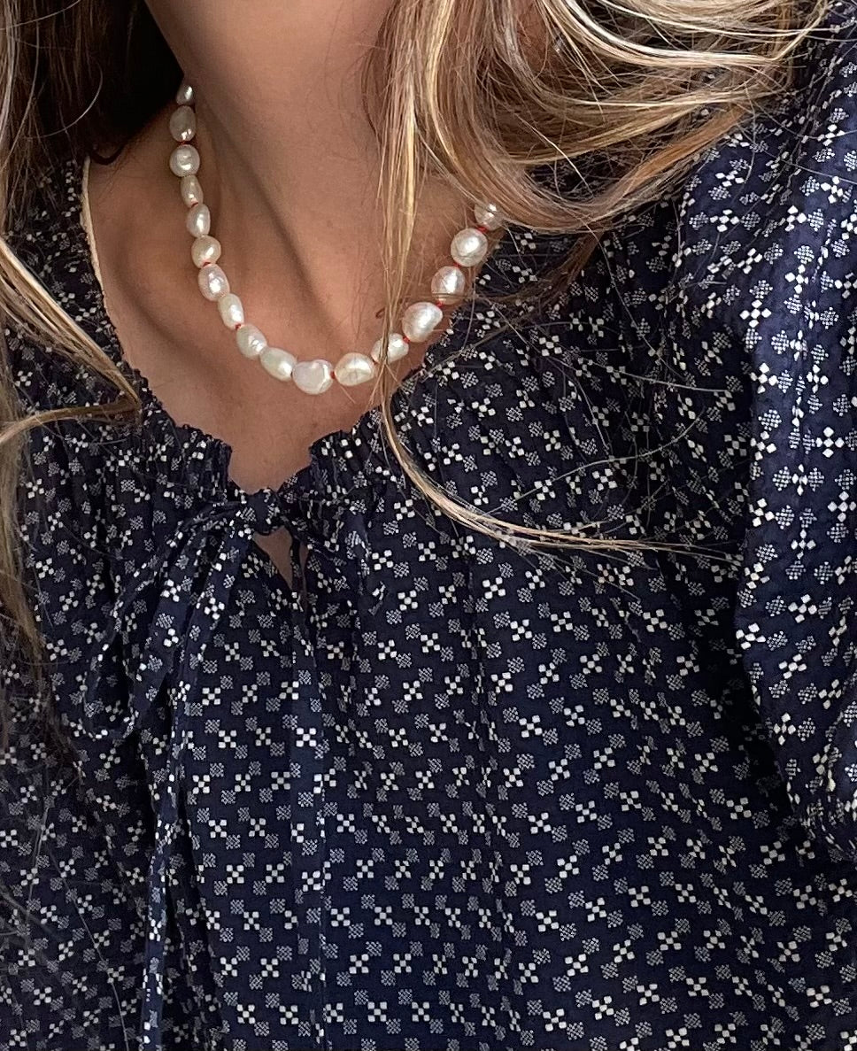 Logan Tay x Coco Maisonette have teamed up to create an exclusive pearl necklace featuring hand-strung freshwater pearls, accented by hints of red for a signature Coco Maisonette touch. Feminine and full of coastal charm, this necklace has been designed in the perfect everyday size to pair effortlessly with all your favorite Coco Maisonette pieces.