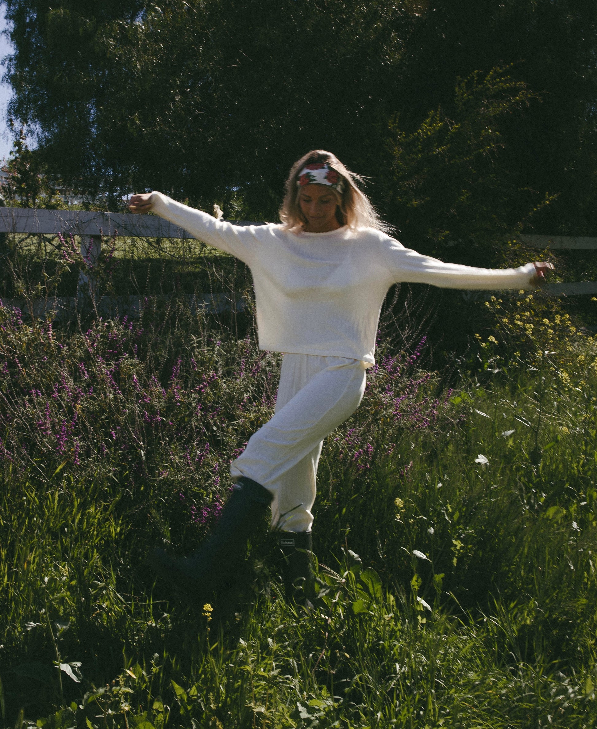 Introducing the Organic Pointelle Top in Créme. With it's delicate, lace-like knit and scalloped neckline, this top captures the romantic charm of vintage silhouettes while offering comfort for springtime strolls and slow mornings at home. Soft, breathable, and designed for all seasons, this feminine and nostalgic piece will be a versatile staple.