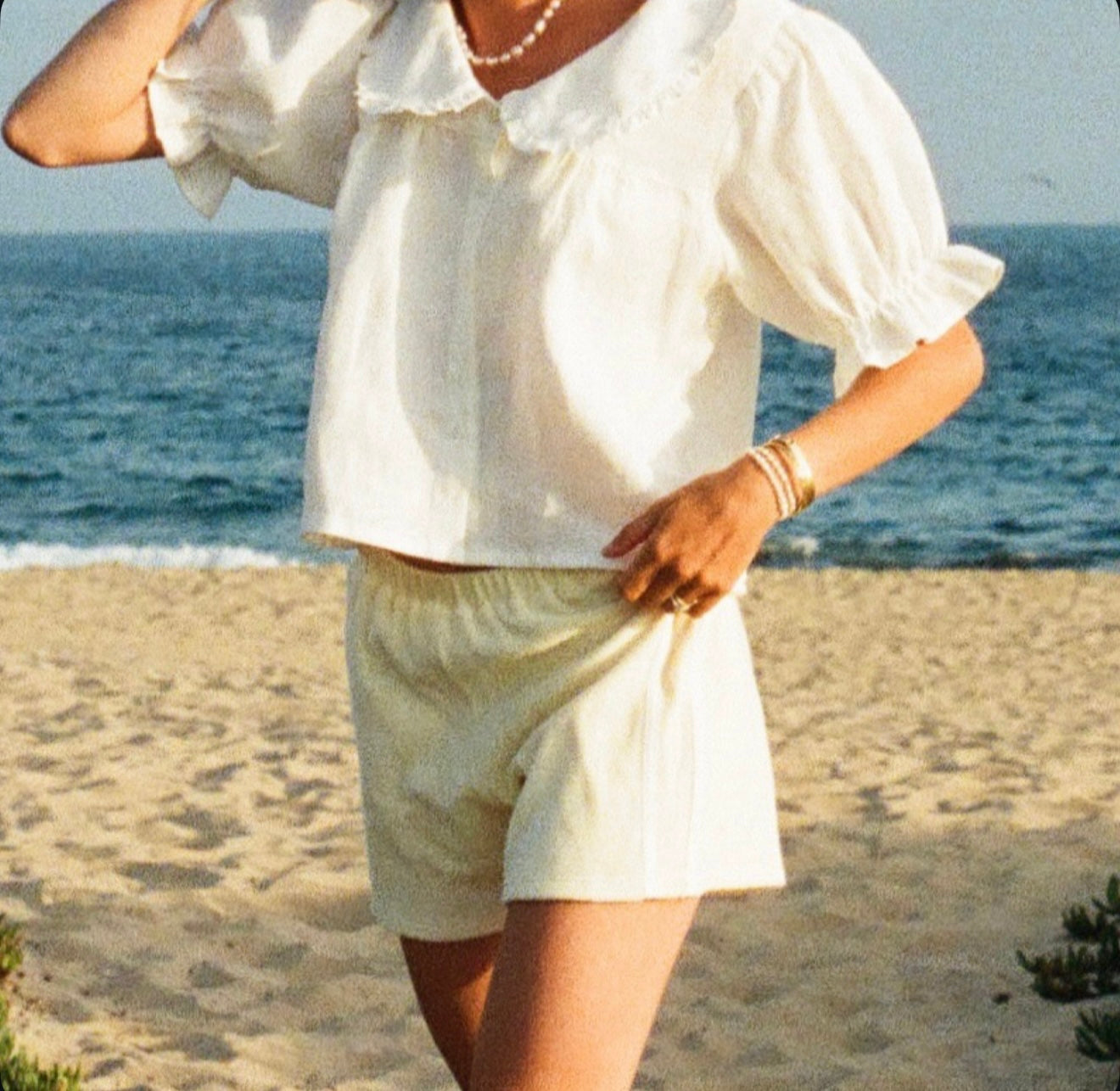 Introducing our organic stripe shorts. Crafted with a vintage-inspired feel, these shorts evoke memories of raiding your mom's closet for treasured pieces. Made from organic lightweight terry cloth cotton, these shorts are soft and breathable giving you all the coastal comfort feels. The elasticized waistband ensures a comfortable fit for all stages of life, whether you're lounging at home, exploring the shoreline, or running errands with your little one. Pair them with the Bluebell baby tee for a laid-back look or elevate them with the Chérie blouse for a romantic feel.