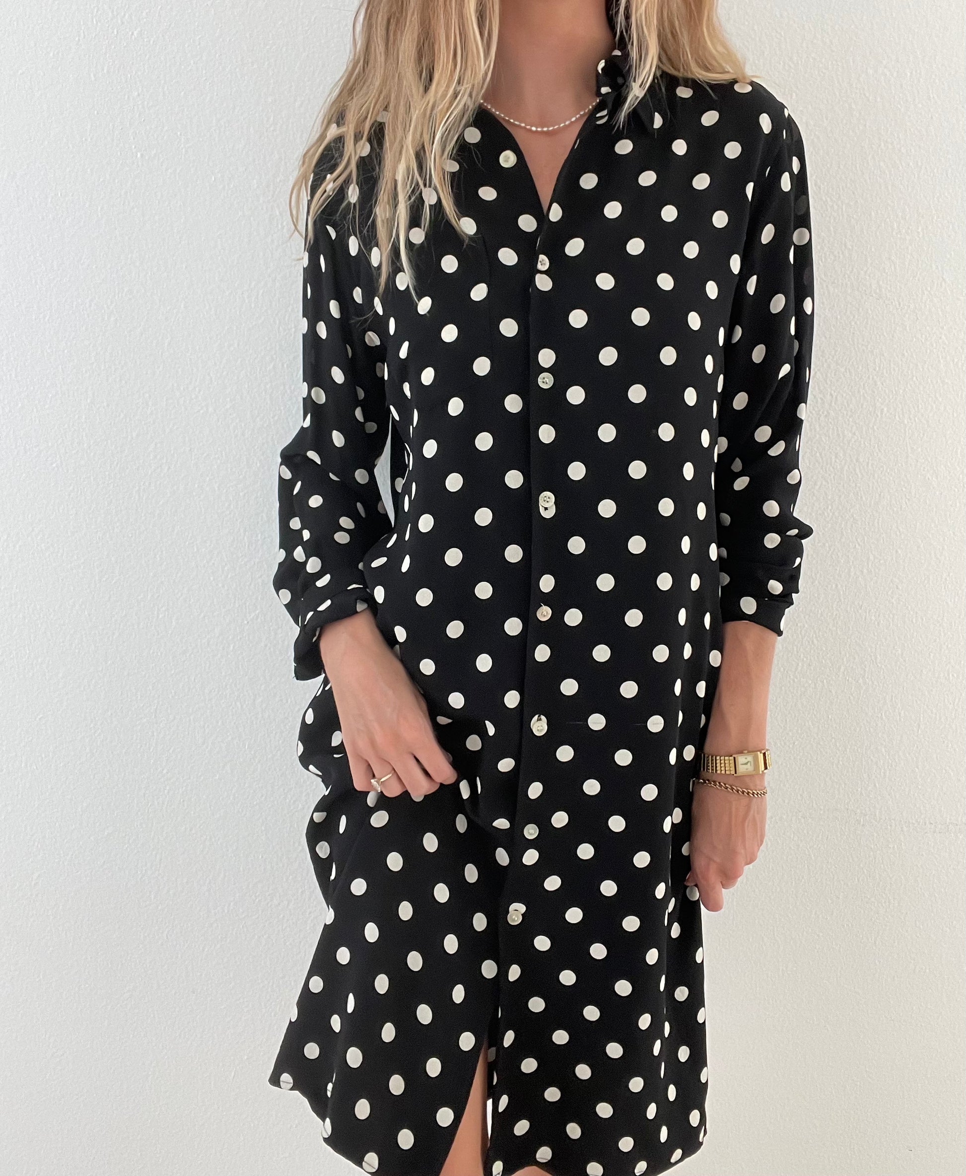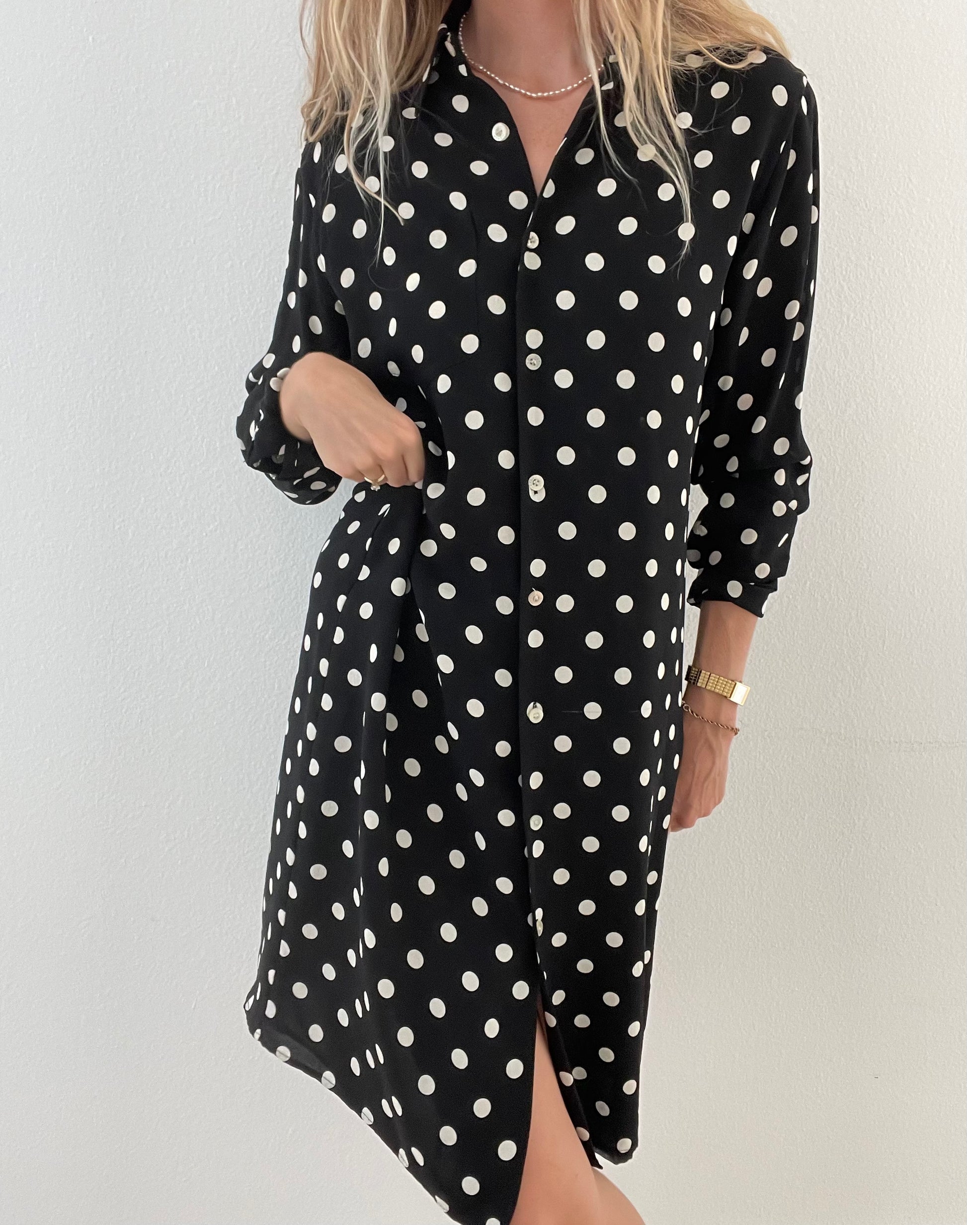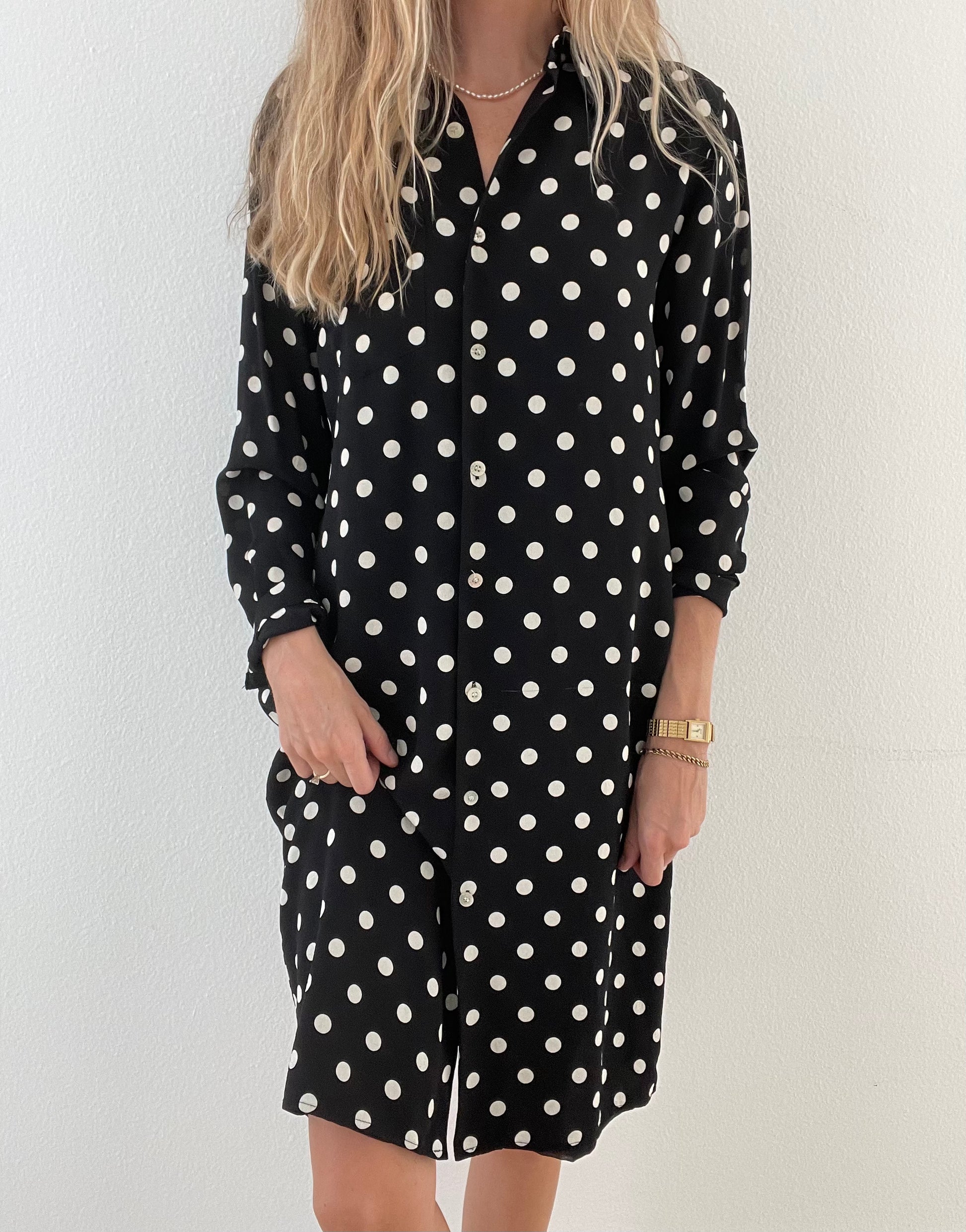 Vintage Ralph Lauren polka dot dress made from 100% silk. It's giving Rouje vibes and would be so cute belted with a chain belt for fall!