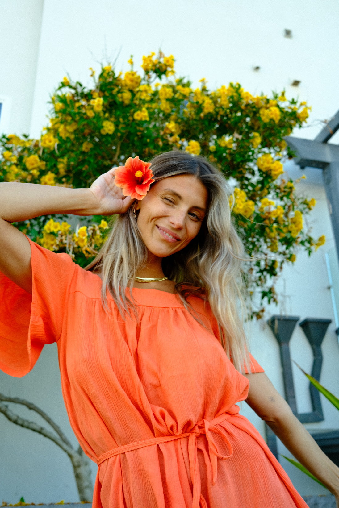 With its vintage-inspired coastal silhouette, this timeless piece is a wardrobe staple that will fit perfectly into your capsule collection. The Marguerite dress comes with a removable tie that can be cinched at the waist or tied to create an umpire waist. This piece is lovingly handmade by female artisans in Orange County, ensuring quality and attention to detail.