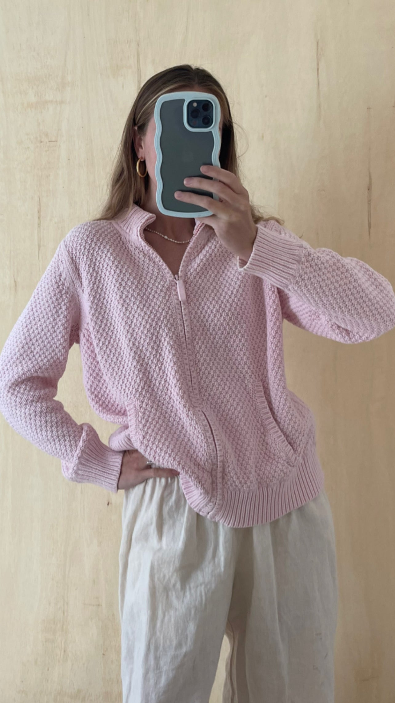 This vintage pink bubblegum knit jacket is so soft and so cute. The color and knit texture are giving Matilda Djerf vibes and I'm obsessed!